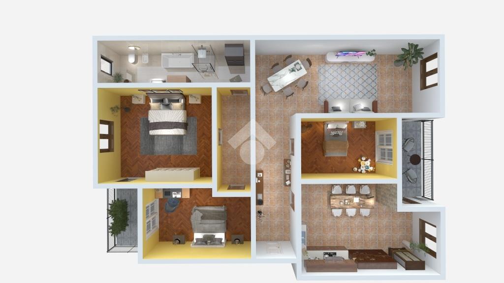 Possibilità di inglobare la cameretta vicino alla cucina nel salotto, nel caso in cui si necessitasse di più spazio da dedicare a quest’ultimo e non servisse la terza camera da letto.
