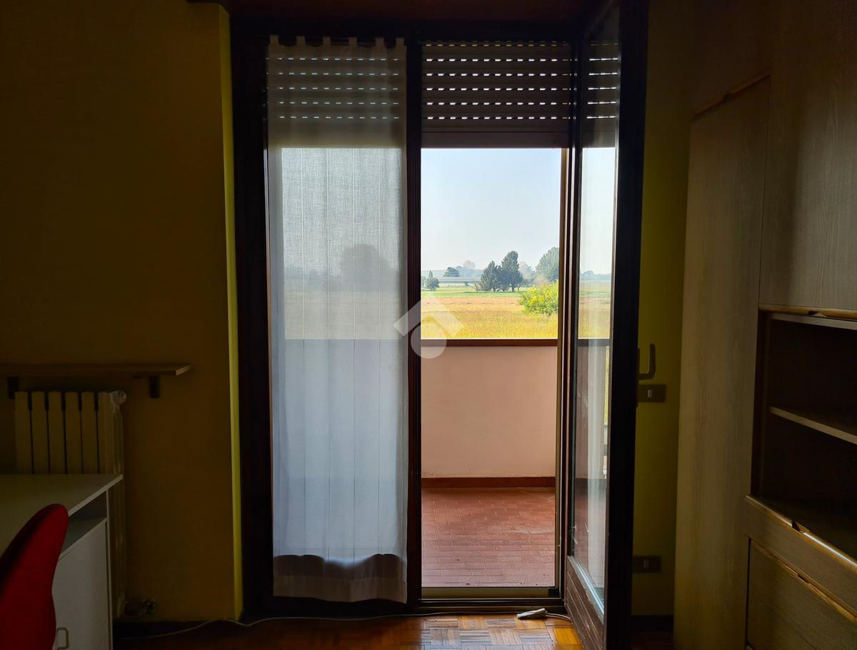 L’appartamento affaccia dal lato est sul giardino condominiale e dall’altro (ovest) sull’aperta campagna, donando all’appartamento molta luce e poco rumore dovuto al traffico.