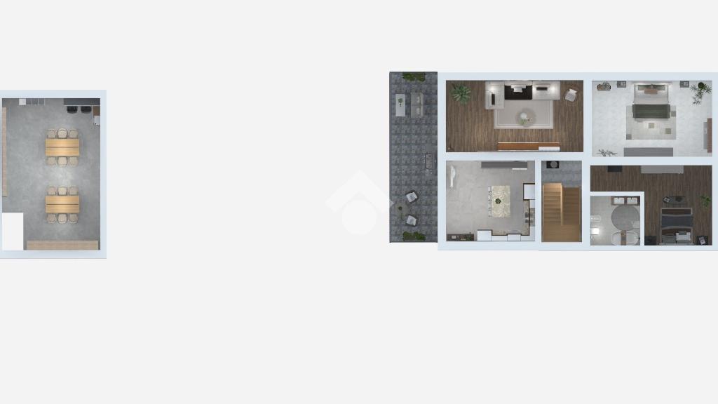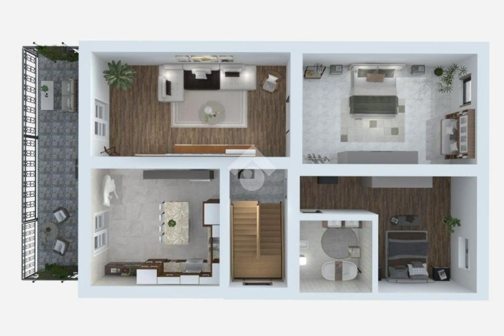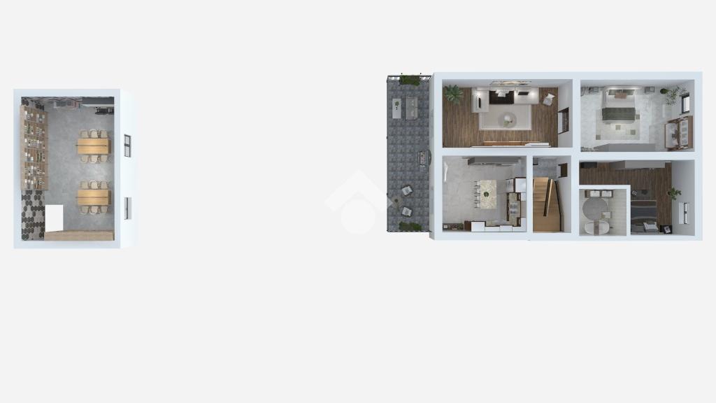 Al primo piano si trova un appartamento, di tre locali con cucina abitabile, soggiorno, due camere da letto e servizi con un grande terrazzo molto sfruttabile. Al secondo piano si trova un'ampia mansarda e salendo ulteriormente si può accedere direttamente al tetto.