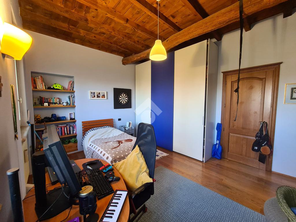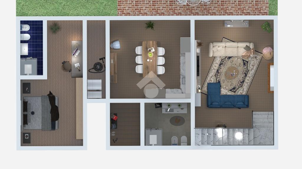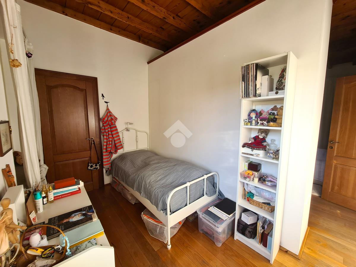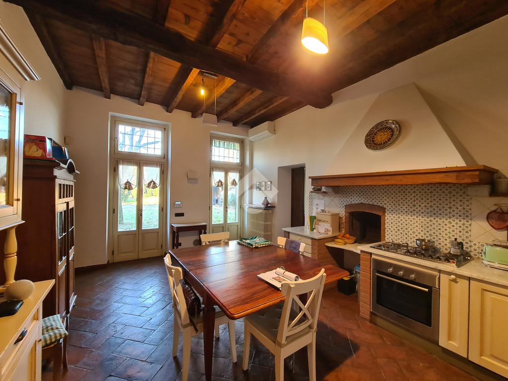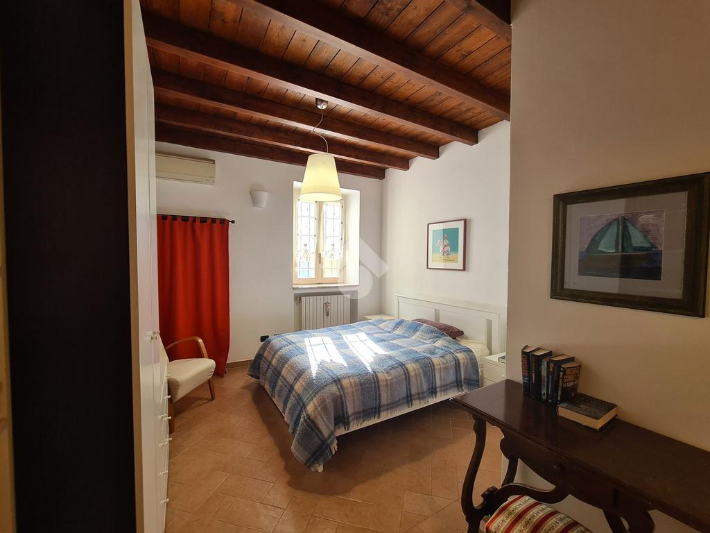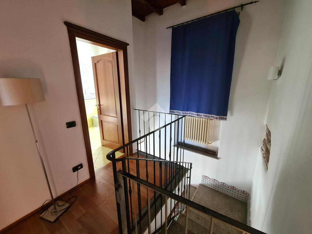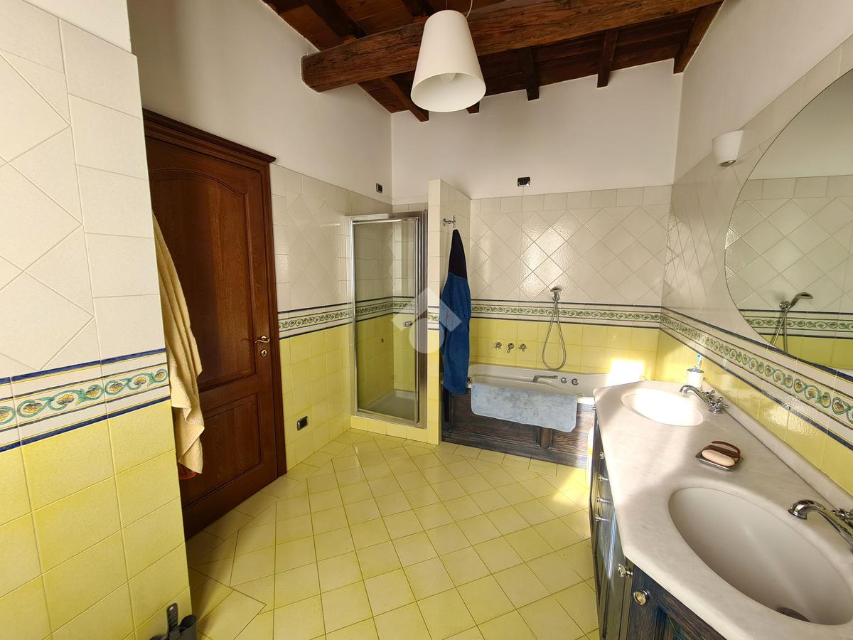 L’abitazione è così composta: ingresso in disimpegno con a destra bagno di servizio completo di box doccia e attacco per la lavatrice; dal disimpegno si accede alla grande cucina abitabile in muratura e forno a legna; dalla cucina si accede al locale caldaia e ad un piccolo monolocale con ingresso indipendente mentre sul lato opposto, separate da porte antiche, si apre il soggiorno con camino funzionante. Le porte finestre permettono l’accesso al giardino privato sia dalla cucina che dal salotto. Salendo la scala del soggiorno accediamo alla zona notte con cameretta, bagno padronale finestrato con box doccia e vasca idromassaggio e alla camera matrimoniale tripla con vista sul giardino privato.