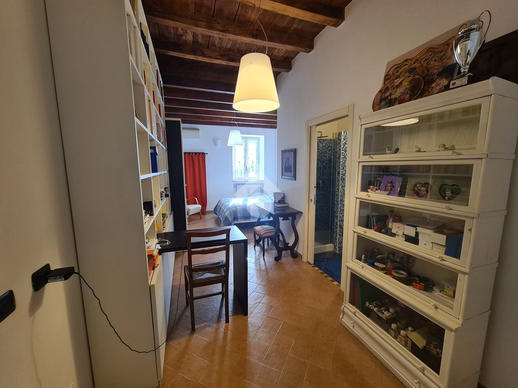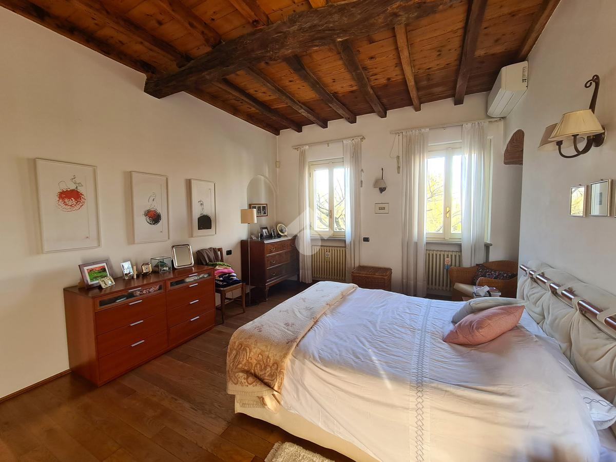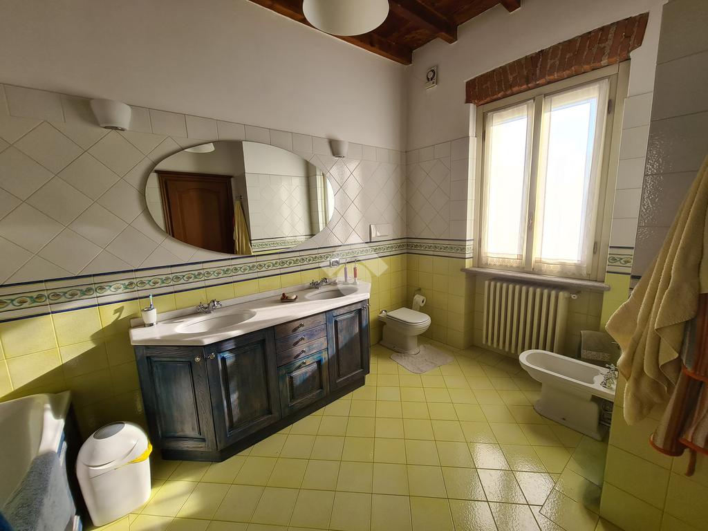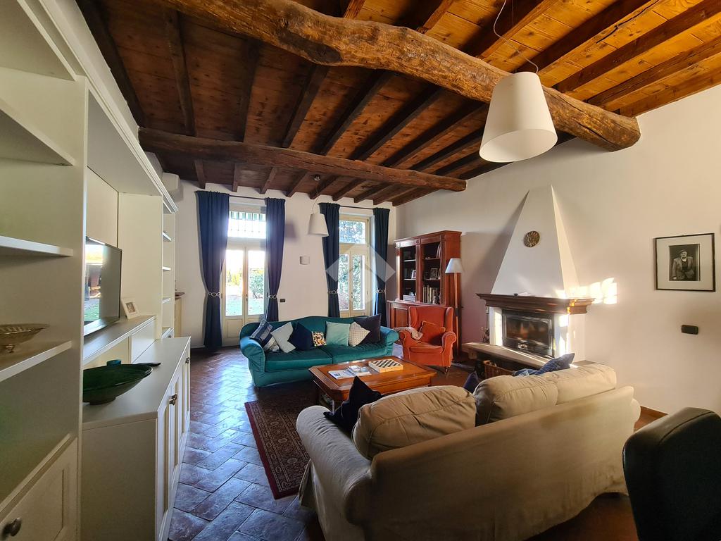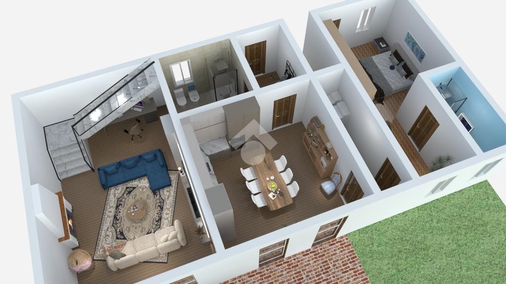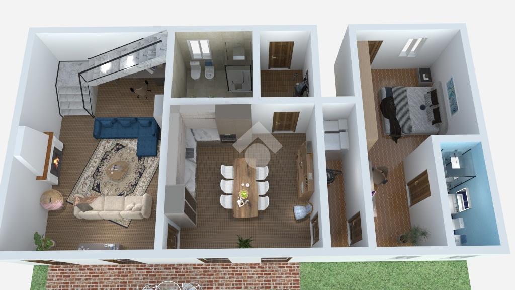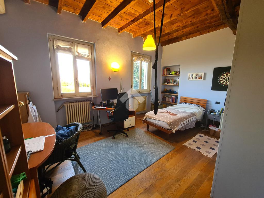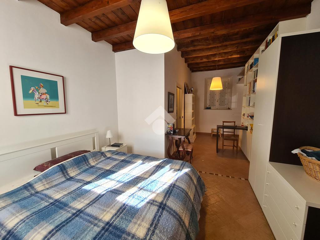 L’abitazione è così composta: ingresso in disimpegno con a destra bagno di servizio completo di box doccia e attacco per la lavatrice; dal disimpegno si accede alla grande cucina abitabile in muratura e forno a legna; dalla cucina si accede al locale caldaia e ad un piccolo monolocale con ingresso indipendente mentre sul lato opposto, separate da porte antiche, si apre il soggiorno con camino funzionante. Le porte finestre permettono l’accesso al giardino privato sia dalla cucina che dal salotto. Salendo la scala del soggiorno accediamo alla zona notte con cameretta, bagno padronale finestrato con box doccia e vasca idromassaggio e alla camera matrimoniale tripla con vista sul giardino privato.