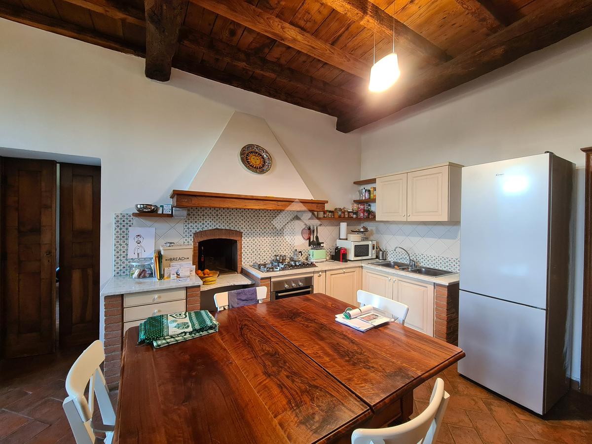 L'immobile si presenta in ottimo stato interno e esterno, abitabile fin da subito. La facciata è stata rifatta completamente nel 2024. Gli infissi sono in legno con doppio vetro, scuri esterni blindati, zanzariere e pavimentazione in cotto, ceramica e parquet in rovere. Travi a vista per tutto il soffitto. Sono presenti 5 split per l’aria condizionata, 4 di questi funzionano anche come pompa di calore. Il riscaldamento è autonomo e la caldaia è stata sostituita nel 2022.