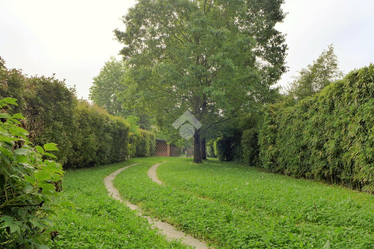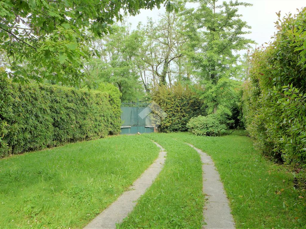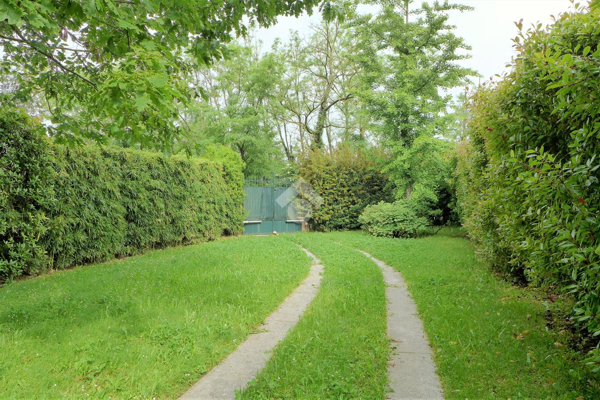 Il giardino è ampio 820 mq con secondo ingresso sulla strada, ben piantumato e con sistema di irrigazione.
